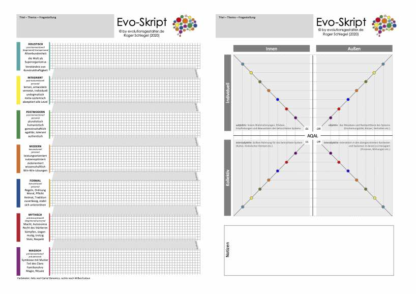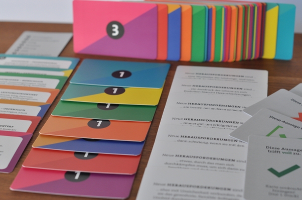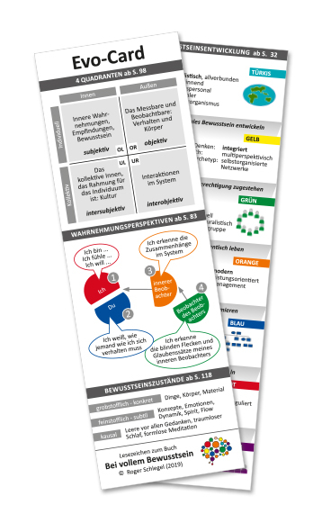 Das Kartenset ist dabei sowohl zu Farbspektren von Spiral Dynamics als auch zu Wilber/Laloux kompatibel.